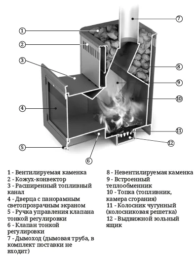 Каменка разделена на две части: вентилируемую и невентилируемую
