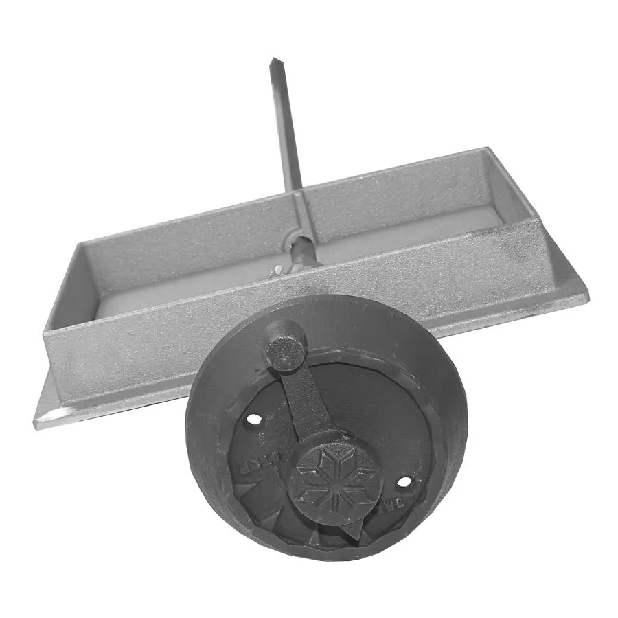 Задвижка с четырьмя положениям крышки: закрыто, открыто на 90, 60 и на 30 градусов. Положение изменяется с помощью специальной ручки. Возможность увеличения или уменьшения длины оси позволяет печнику использовать данные типы задвижек в любом дымоходе, независимо от расстояния между дымоходом и топливником.