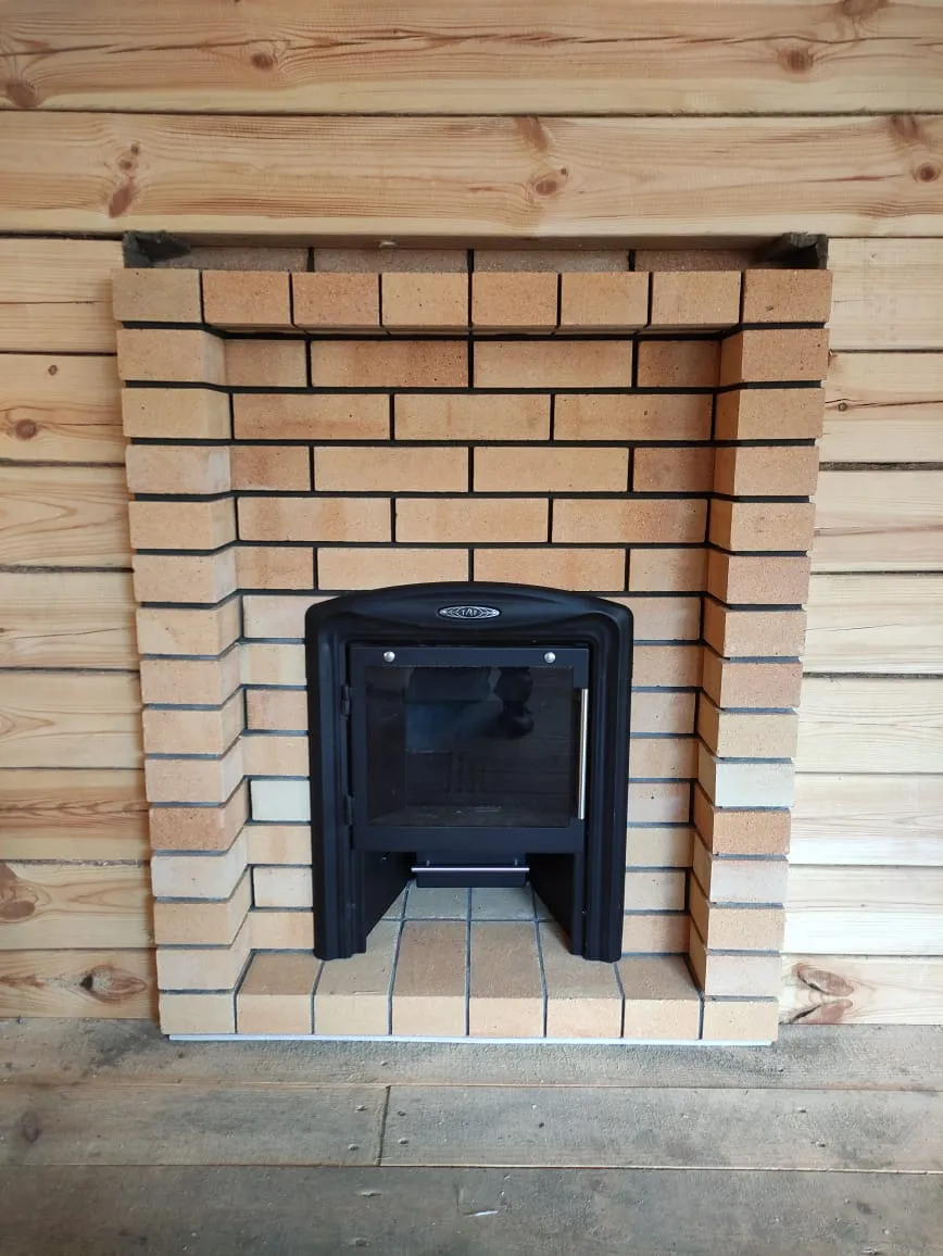 - кирпичная кладка с шамотного кирпича фронтальной стены,