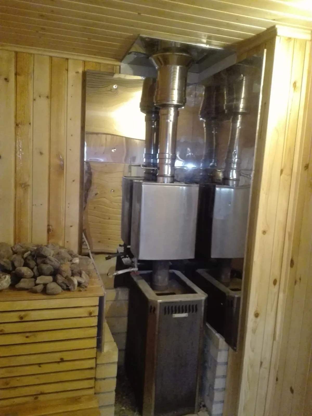 Проекты по установке банных печей: Переделка дымхода на печи Теплодар Сахара